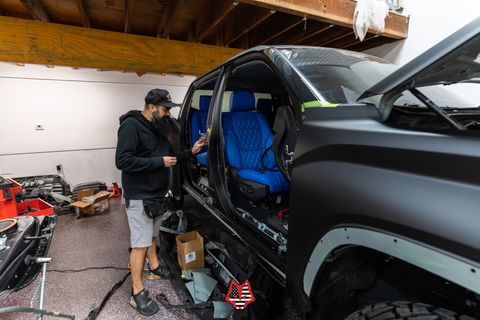 All lighting swapped to blue and we added interior, rock and grill blue LED lights installed by Vega Designs